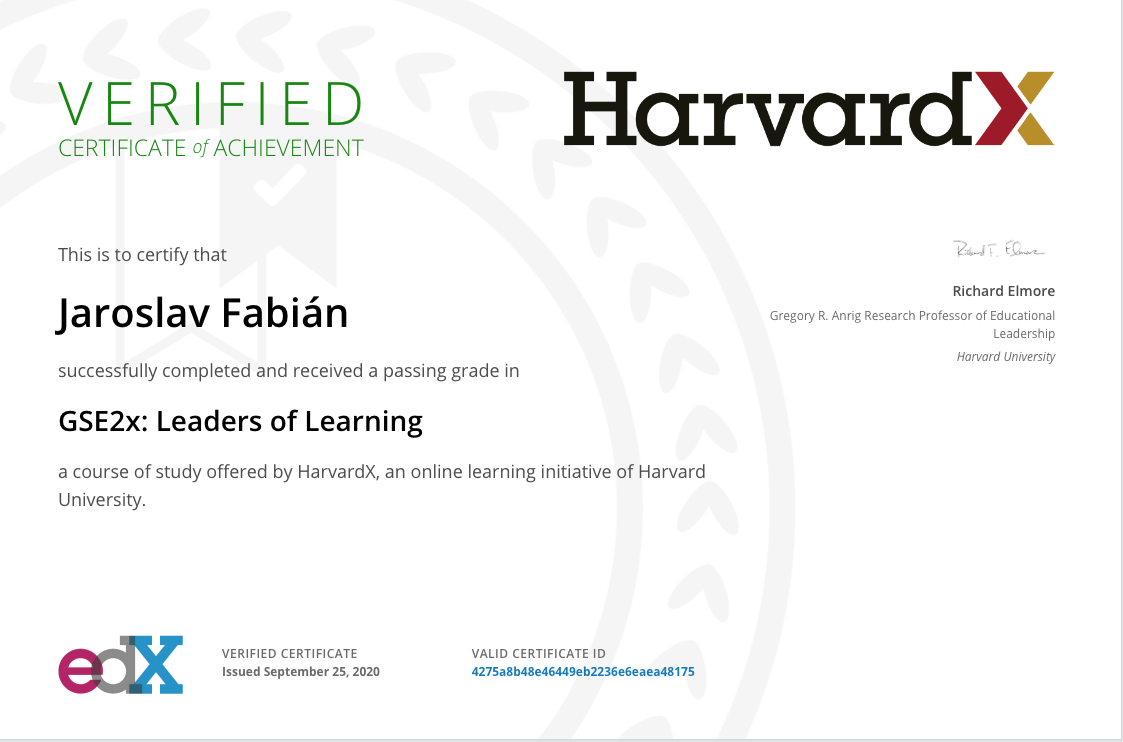 | GSE2x: Leaders of Learning | HarvardX | 100 | Bez ICF akreditace | 2020 | Náhled |