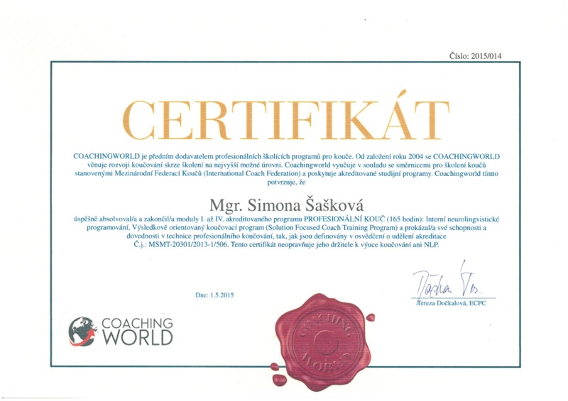 | Profesionální kouč | Coachingworld | 165 | Bez ICF akreditace | 2015 | Náhled |