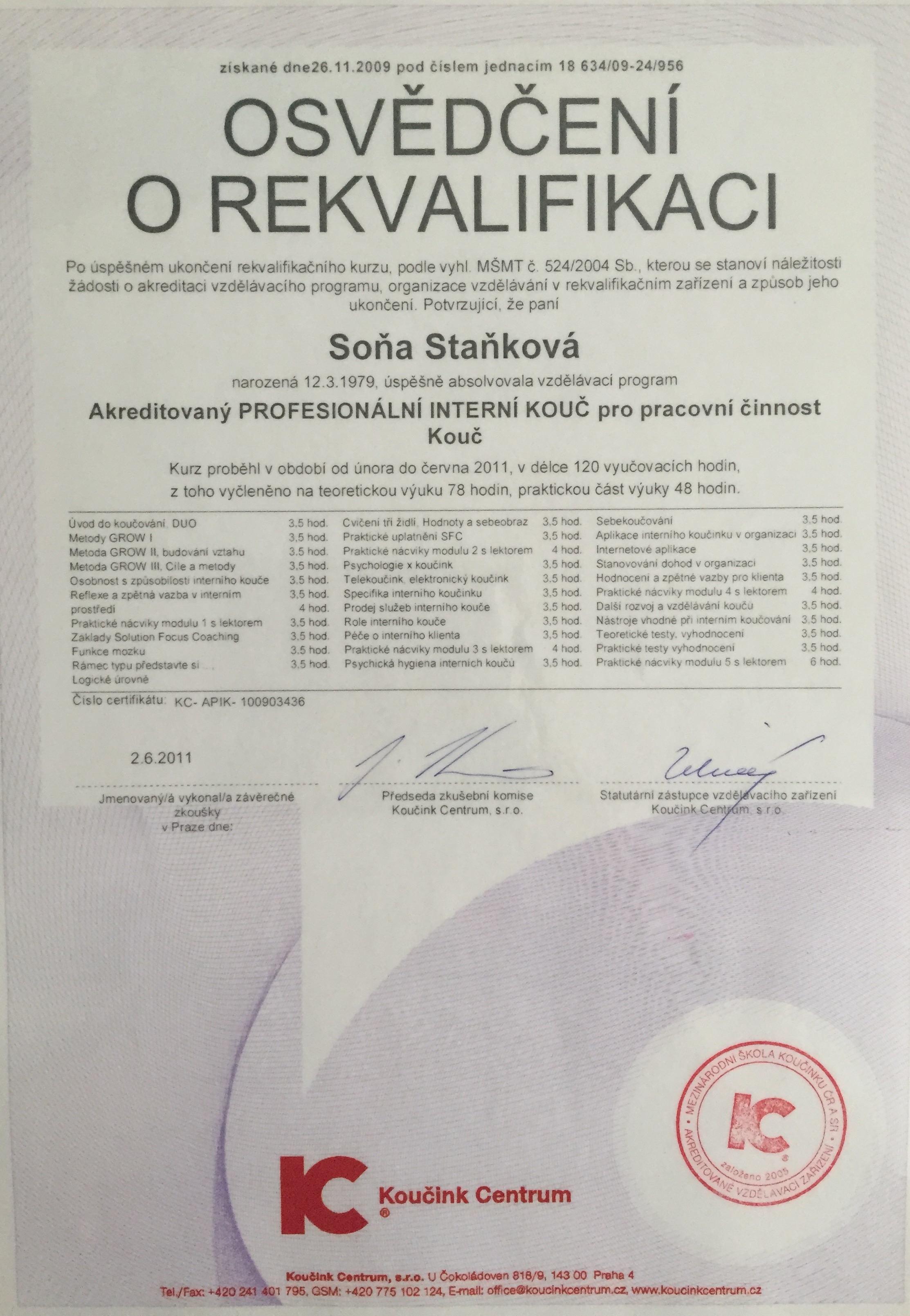Koučování se věnuji od roku 2011 a mohu být užitečná Vám osobně, týmům a organizacím na cestě k vnitřní svobodě a trvalému zplnomocnění.