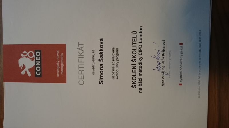 | Název | Vzdělávací instituce | Hodiny | Typ tréninku | Rok ukončení | Certifikát |