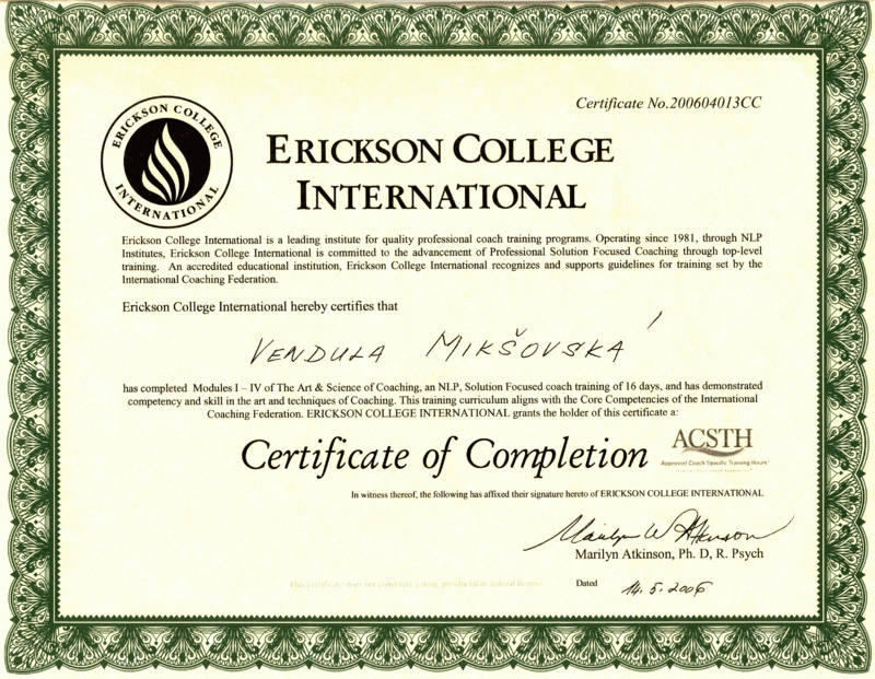 | The Art and Science of Coaching | Erickson College | 128 | ICF ACTP | 2006 | Náhled |