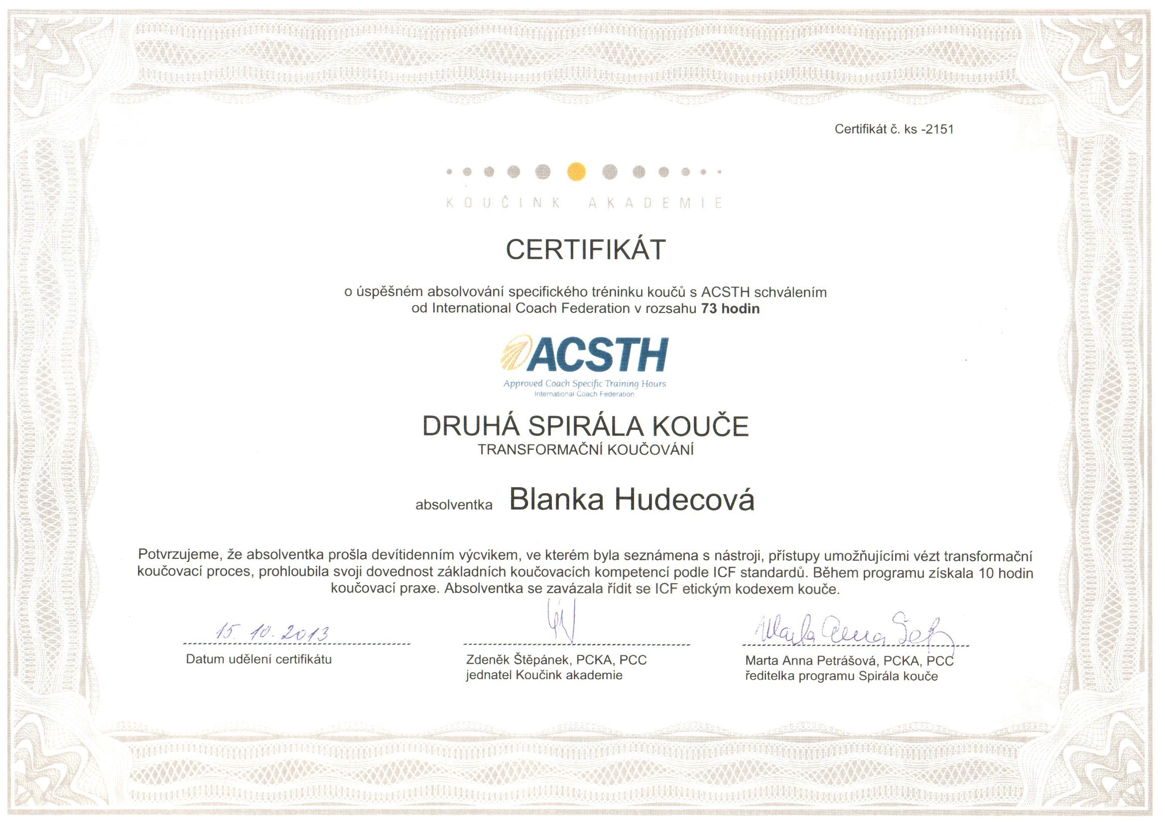 | Transformační koučování - Druhá spirála kouče | Koučink Akademie | 73 | ICF ACSTH | 2013 | Náhled |