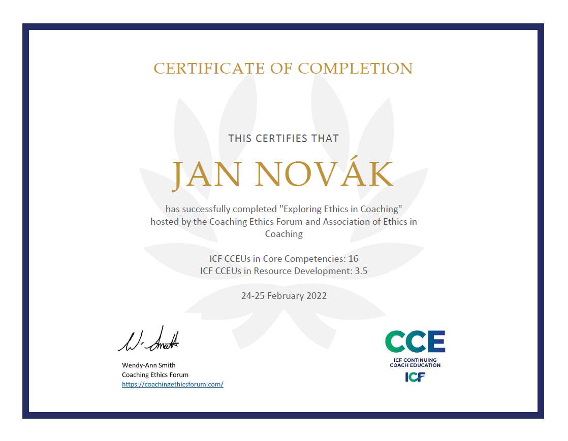| Coaching Ethics Forum Conference 2022 | Coaching Ethics Forum | 19 | ICF CCEU | 2022 | Náhled |