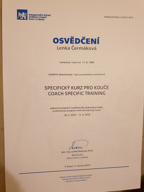 Coach Specific Training ČVUT v Praze, Masarykův ústav vyšších studií 64 Bez ICF akreditace 2019 Náhled