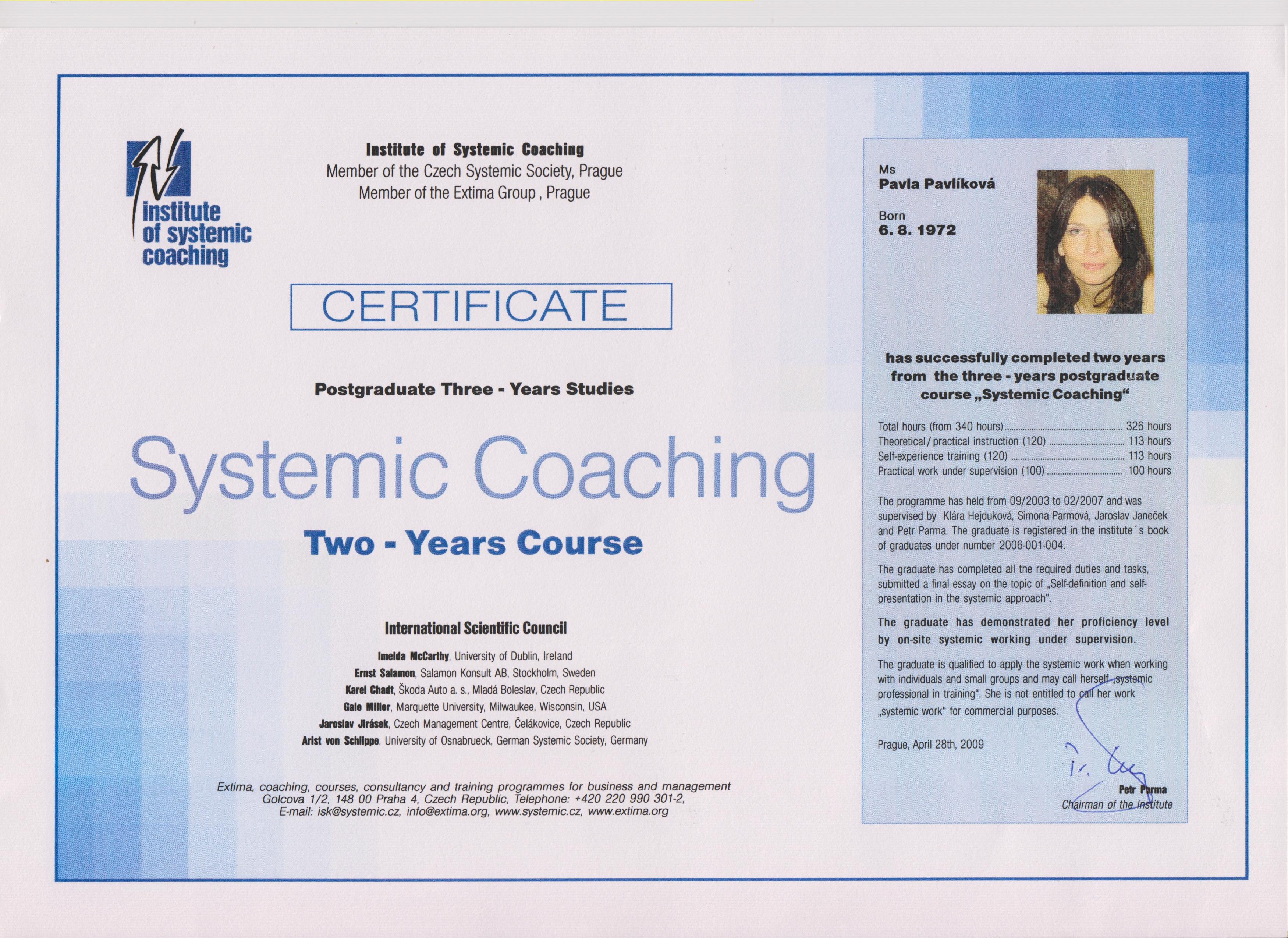 Název Vzdělávací instituce Hodiny Typ tréninku Rok ukončení Certifikát