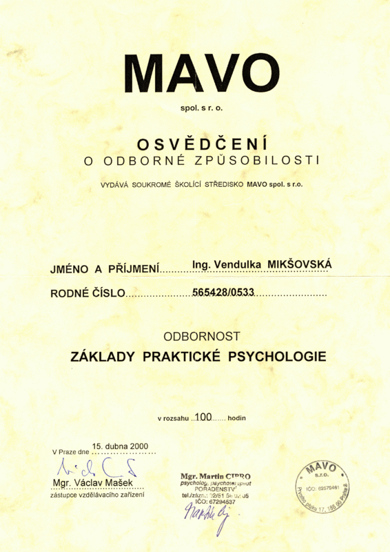 Základy praktické psychologie MAVO 100 Bez ICF akreditace 2000 Náhled
