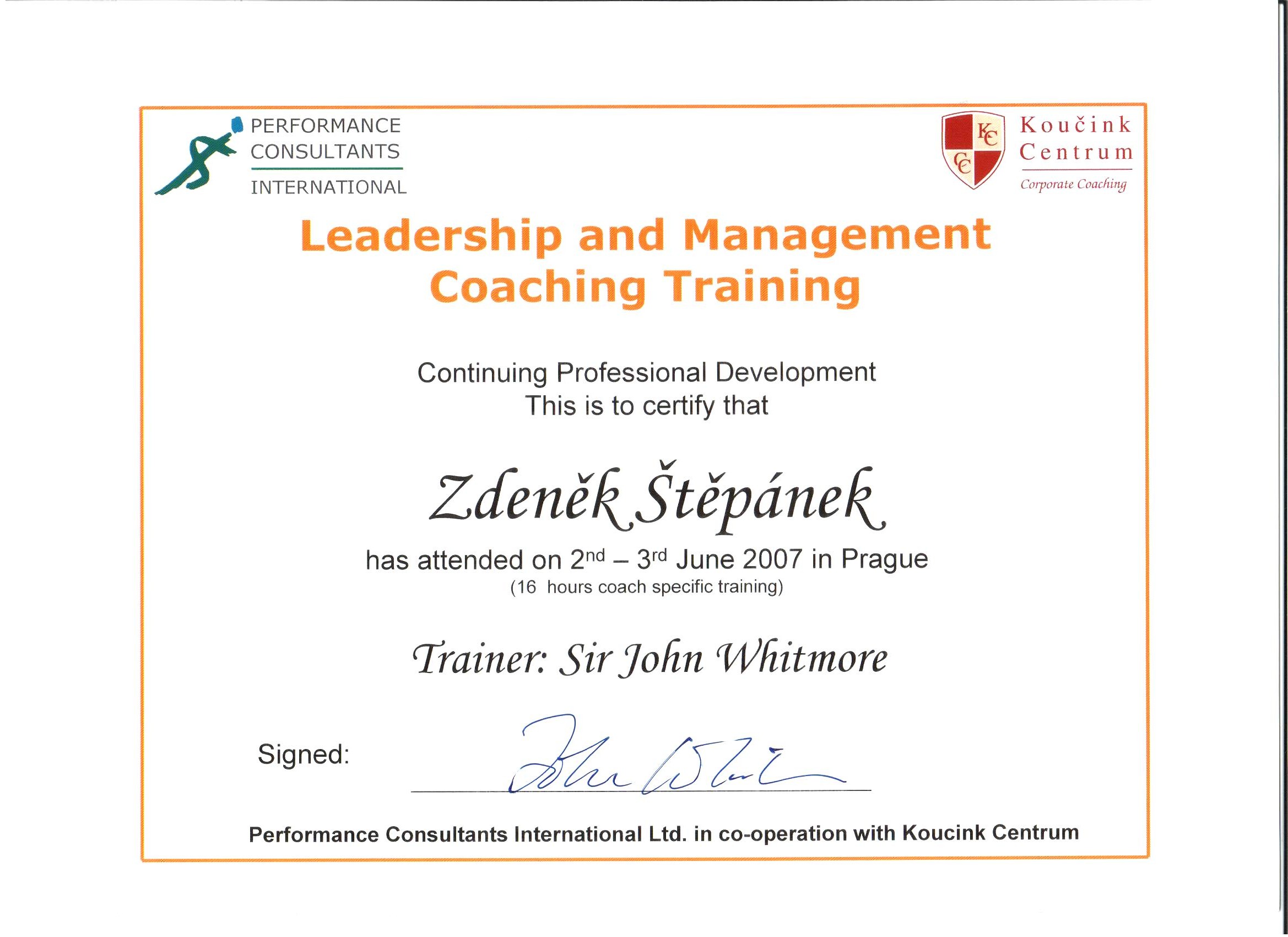 Leadership and Management Coaching Training Sir John Whitmore UK 16 ICF ACSTH 2007 Náhled