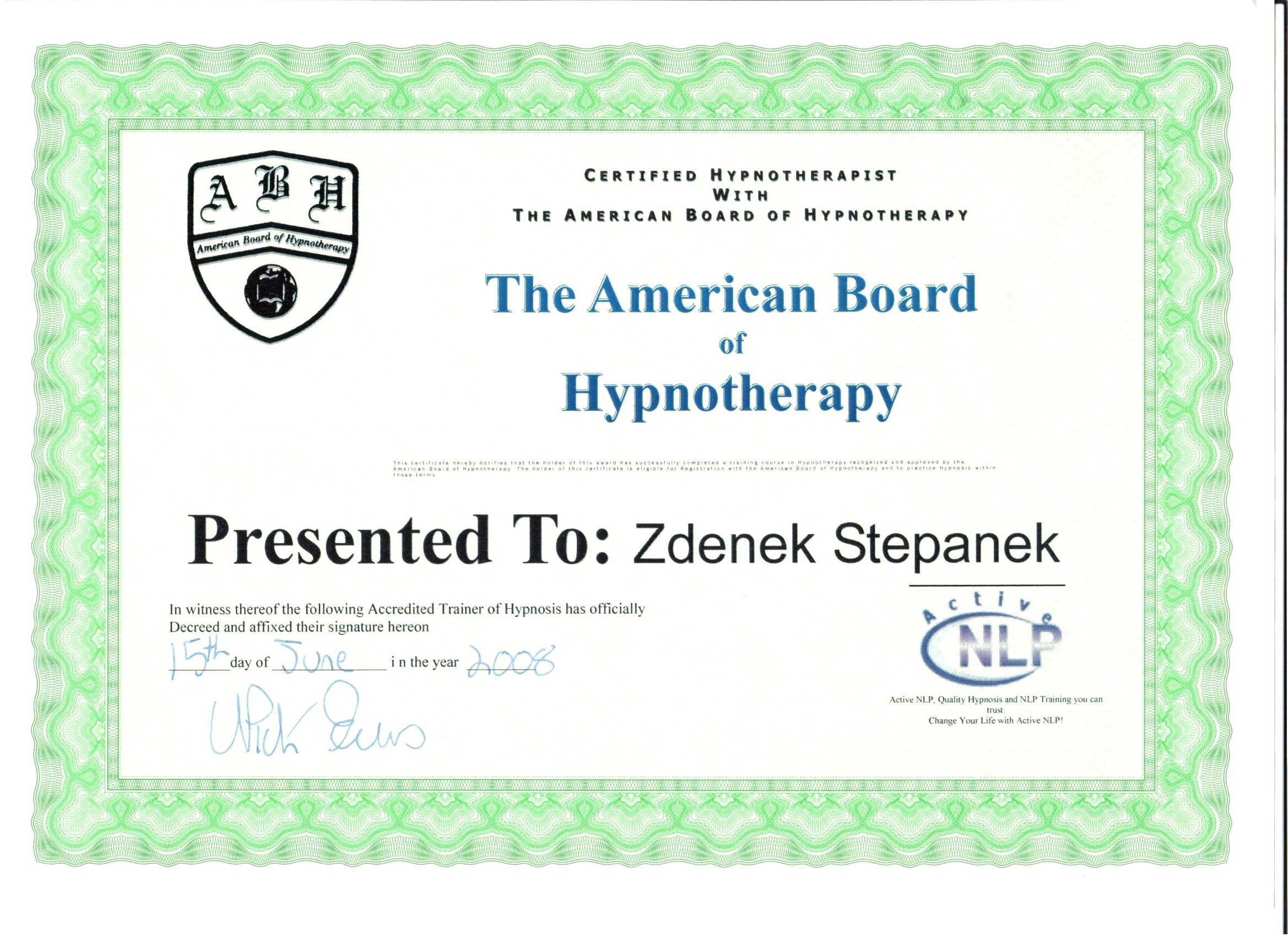 NLP Practicioner INLPTA Nicholas Evans - NLP Devon UK 250 Bez ICF akreditace 2009 Náhled