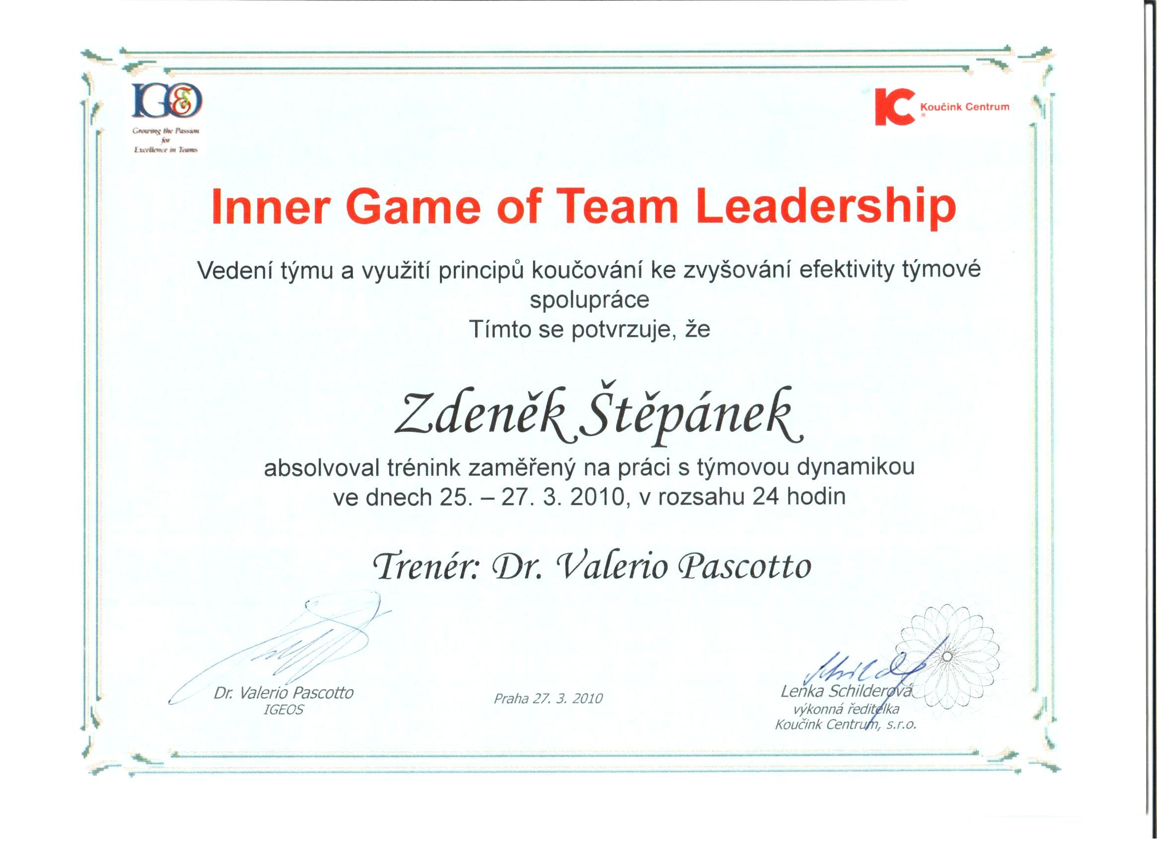 Inner Game of Team Leadership Dr. Valerio Pascotto - USA 25 ICF ACSTH 2010 Náhled