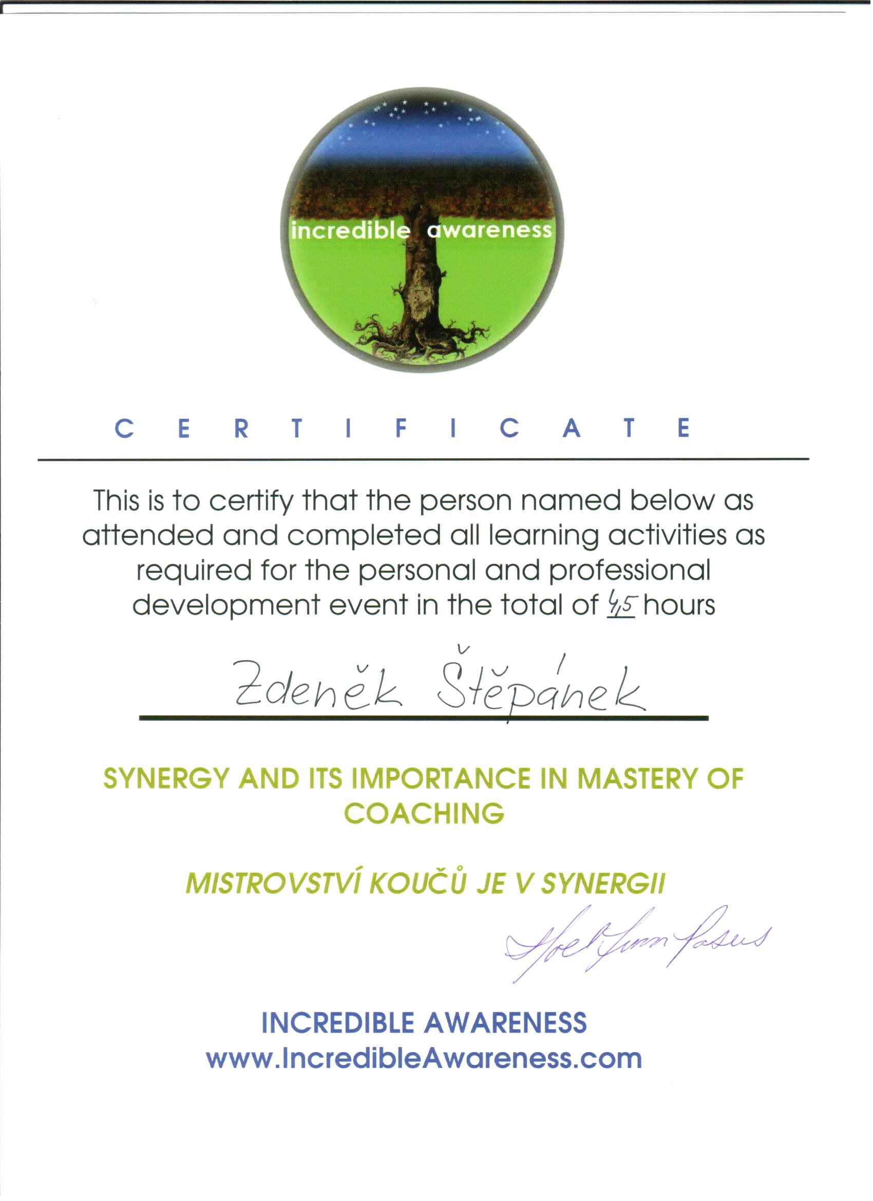 Synergy in mastery of coaching Noel Posus - Austrálie 4 Bez ICF akreditace 2010 Náhled